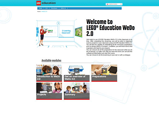 LEGO Education je za pomoč učiteljem pripravil portal e-Učenje, ki vam bo pomagal, postati samozavestni uporabnik kompletov WeDo 2.0.